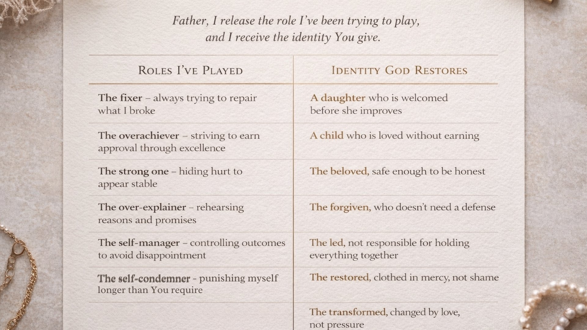 “Father, I release the role I’ve been trying to play, and I receive the identity You give.”